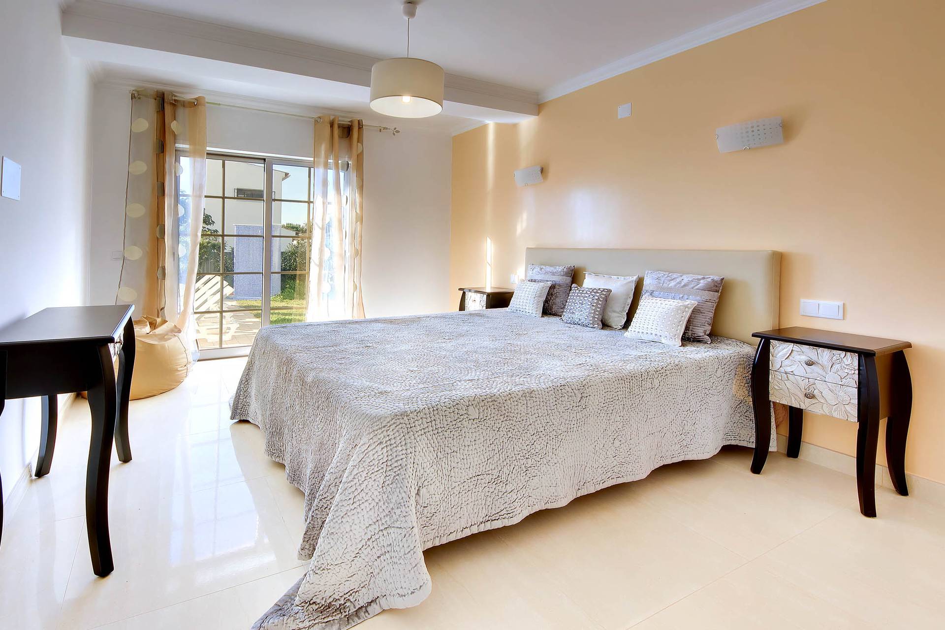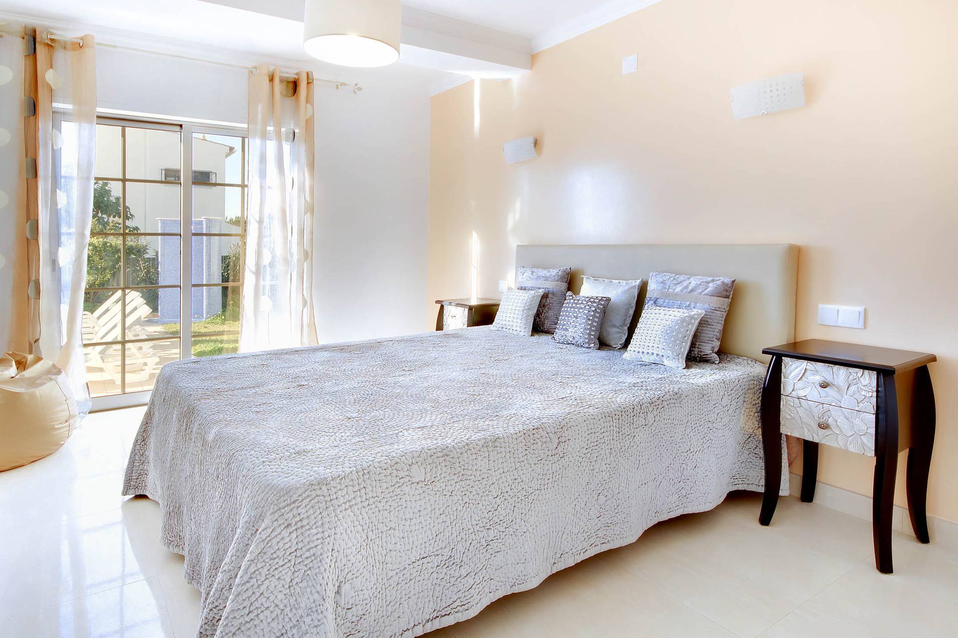 No r/c encontra-se uma cozinha completa com zona de refeições, a sala de estar moderna com uma mesa para 8 pessoas e acesso à piscina. O quarto, en-suite, com cama casal e terraço também se encontra neste piso e ainda uma casa de banho de serviço.